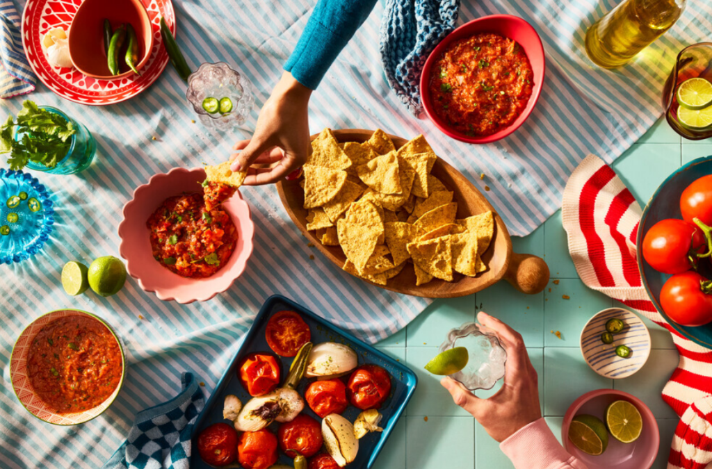 Zagrijte pećnicu na 205 °C. Na lim za pečenje rasporedite cijele rajčice, luk, češnjak i serrano papriku. Pecite 45 minuta, dok povrće ne omekša i ne potamni na mjestima. Odmah prebacite sadržaj lima u blender i dodajte chipotle papričice s umakom, sok od limete, sol i korijandar. Pulsirajte 5 puta da se sastojci povežu, a zatim pomoću kotačića za preciznu kontrolu brzine blendajte između brzina 1 i 2 oko 15 sekundi, dok ne dobijete željenu teksturu.