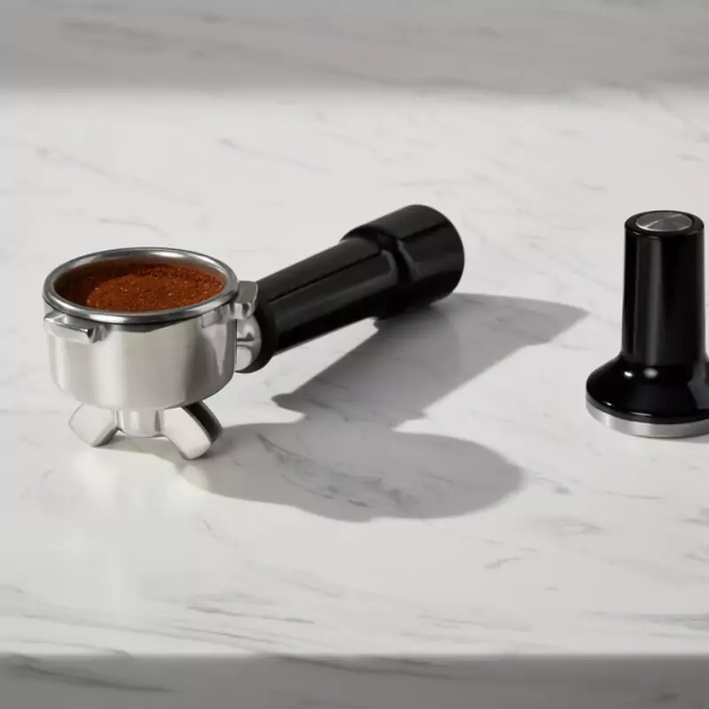Široki portafilter od 58 mm s udubljenim izljevima omogućuje ravno tampiranje na bilo kojoj površini – za dosljednu ekstrakciju i bogatu kremu.