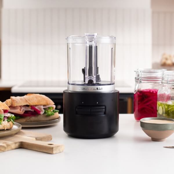 Dizajnirali smo ju kako biste mogli stvarati slobodno, bilo gdje, bilo kada! Zamjenjiva baterija omogućava neprestan rad 25 minuta, kako biste mogli sjeckati, pasirati ili napraviti šlag u vašoj kuhinji ili čak u vašem vrtu. Sada ne morate biti ograničeni samo na vašu kuhinju, pustite mašti na volju. Baterija također napaja sve ostale uređaje iz KitchenAid Go bežične kolekcije.