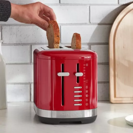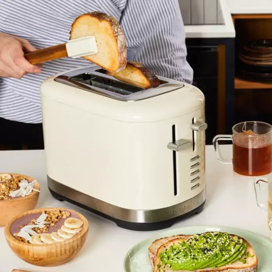 Sokakat a piros kenyérpirító ejt bűvöltbe, de ez a KitchenAid kenyérpirító ónix fekete és mandulakrém színben is elegáns stílust kölcsönöz a konyhájának.