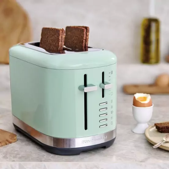 Dobja fel a nap legfontosabb étkezését a KitchenAid Design kollekcióhoz tartozó 2-szeletes hosszú nyílású kenyérpirító (5KMT3115E) sütőjével és reggelizzen akárcsak egy király. A pirítós sütő hosszú és széles nyílásának köszönhetően mindenféle méretű, vastagságú kenyér pirításával elboldogul, legyen szó kézzel, vastagabb szeletekre vágott kézműves kenyerekről, vagy hosszabb paninikről. Állítható funkciók révén az átsütés mértékét ízlése szerint szabályozhatja: használja ki a Bagel, Kiolvasztás, Újramelegítés vagy az „Egy árnyalattal sötétebb” funkciók nyújtotta lehetőségeket és tegye a reggelizést minden nap rendkívülivé! Tisztán tartását a cserélhető tálca teszi egyszerűvé. Karcsú és letisztult formavilág jellemzi, bármilyen konyhapulton kényelmesen elfér és persze nagyszerűen mutat.