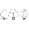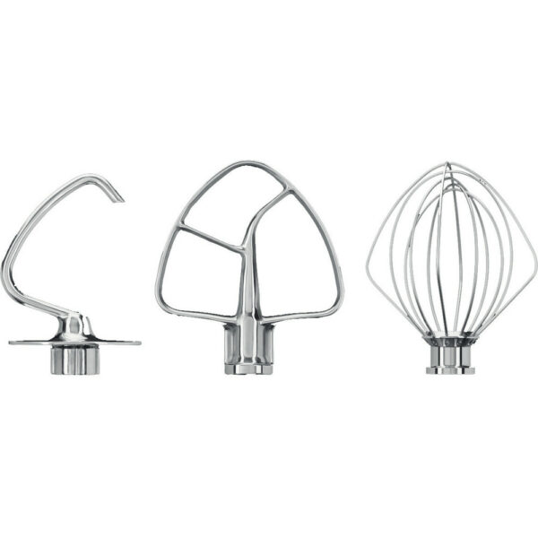 Ravna mutilica za miksanje teških smjesa, pjenjača za lagane i prozračne smjese te kuka za tijesto za savršeno umiješen kruh. Budite spremni za svaki recept uz ovaj KitchenAid set od nehrđajućeg čelika.