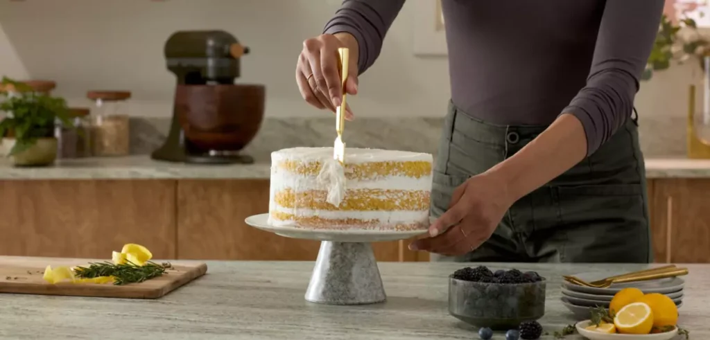 - Premazati cijelu tortu tankim slojem kreme za “naked cake” efekt.